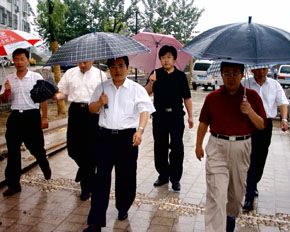 集團(tuán)公司近年來承建的大型重點(diǎn)工程引起了各級(jí)領(lǐng)導(dǎo)及媒體的廣泛關(guān)注,尤其是今年承建的張面河綜合整治工程更是得到了社會(huì)各界的高度贊譽(yù),國(guó)家、省、市等領(lǐng)導(dǎo)多次到工程現(xiàn)場(chǎng)視察參觀指導(dǎo)工作。 ![]() 2004年8月山東省副省長(zhǎng)趙克志視察指導(dǎo)工作 左一為集團(tuán)公司董事長(zhǎng)徐鵬強(qiáng) 左四為集團(tuán)公司總經(jīng)理朱九洲 |