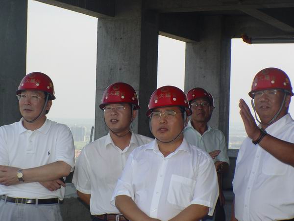 2008年8月2日下午,市委書記張新起視察建設中的陽光大廈工程。集團公司董事長徐鵬強陪同視察。