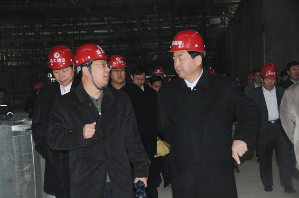 許立全書記首先在會展中心西廣場施工現場駐足,查看了工程形象進度和廣場施工情況。隨后他從展覽區東側安全通道登上16米高二層展覽大廳施工現場查看了工程施工情況。期間,徐鵬強董事長向許立全書記匯報了工程建設的有關情況,許立全書記對集團公司高效的施工組織,優質的工程質量監管表示了充分的肯定。