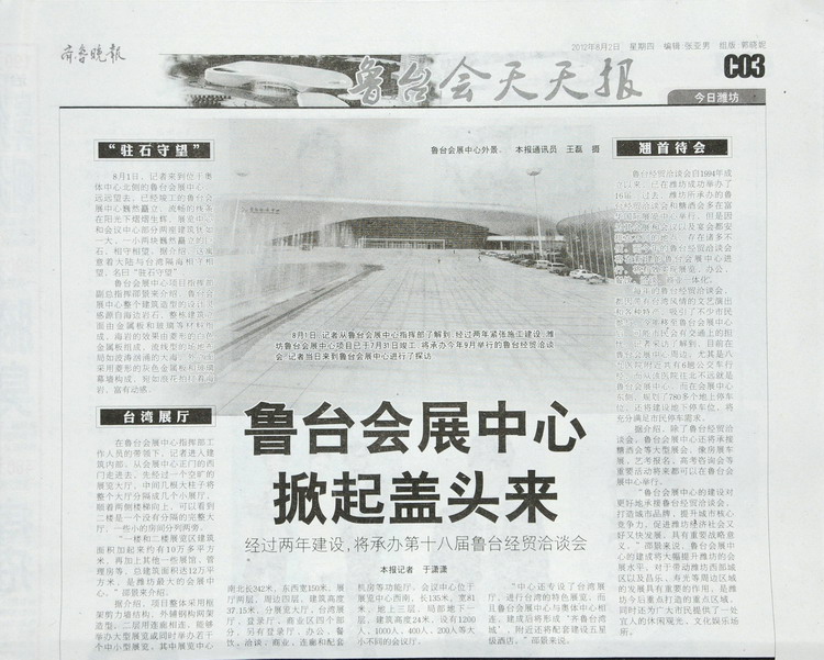 《魯臺會展中心掀起蓋頭來》——齊魯晚報2012年8月2日C03版