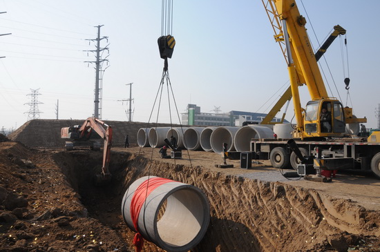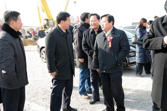 上午10時58分,在濰坊市政府副市長劉偉的主持下,開工儀式正式開始,濰坊市市政局局長孫萬奎匯報工程情況。最后,當濰坊市委副書記、市長許立全宣布工程開工的霎時,鞭炮齊響,彩煙映天,4臺吊車將直徑2.4米的水泥管緩緩吊起,展開施工作業。伴著禮炮噴薄的彩帶,喧天的鑼鼓,震天雷的沖天,和著施工機械的轟鳴聲,把整個開工儀式推向了高潮。隨后,市領導們興致勃勃地來到西側施工現場,觀看了第三分公司的施工作業。