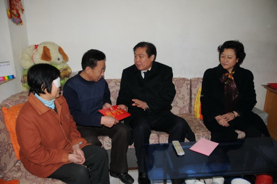 1月19日上午,濰坊市政協(xié)主席趙興濤,市政協(xié)副主席、市總工會主席滿國強等在集團公司董事長徐鵬強陪同下,分別走訪慰問了集團公司全國勞模劉洪章和兩個困難戶家庭——第二分公司任文君和物業(yè)分公司趙淑貞。陪同走訪的還有市建設局黨委副書記高峰,集團公司高管層領導滕忠斌、李坤明等。 ![]() 徐董事長陪同趙興濤走訪 ![]() 走訪趙淑貞 ![]() 走訪任文君 ![]() 走訪慰問全國勞模劉洪章 ![]() 與劉洪章合影留念