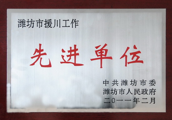集團(tuán)公司和市政公司榮獲“濰坊市援川工作先進(jìn)單位”榮譽(yù)稱號(hào)