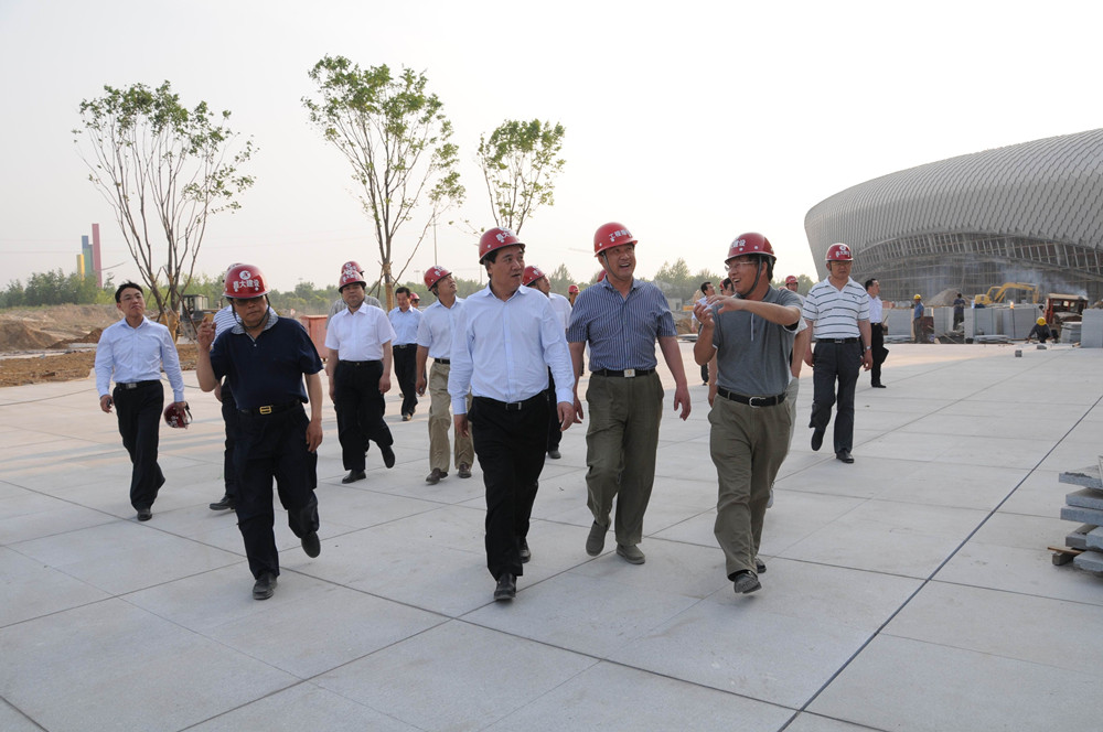 在會展中心西廣場,王獻玲聽取了市建設局副局長張文對工程建設基本情況的匯報,察看廣場、配套工程建設以用展覽區和會議區外裝情況,對工程施工組織表示滿意。