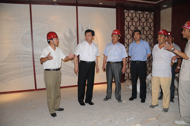 7月16日上午,市委書記許立全在市委副書記王獻玲、副市長夏芳晨、王樹華及市直有關部門負責同志陪同下到會展中心視察。集團公司董事長徐鵬強全程陪同許立全視察。 許立全在會議中心西側下車,查看了展覽中心和會議中心外裝情況、廣場和園林綠化情況,隨后登上會議中心二層察看了內裝并重點察看了千人宴會廳的內裝情況,對會展中心的接待能力進行了了解。許立全聽取了市建設局副局長張文在現場關于工程建設基本情況的匯報,對工程建設情況表示了滿意。