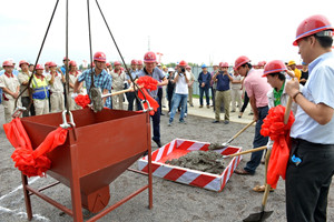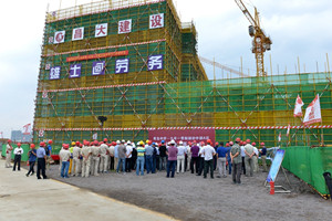 2016年9月10日上午,由集團(tuán)青島公司承建的青島中學(xué)九年一貫制部初中部A區(qū)主體結(jié)構(gòu)在所有已開項(xiàng)目中率先實(shí)現(xiàn)封頂,上午8時(shí)10分舉行了封頂儀式。這一天,恰逢教師節(jié),在這個(gè)春華秋實(shí)、碩果累累的收獲季節(jié)里,昌大人用自己的方式向教師節(jié)獻(xiàn)上了一份厚禮。集團(tuán)副總經(jīng)理閆鵬與參加封頂儀式的青島以及項(xiàng)目各方:青島市高新區(qū)黨工委委員、管委會(huì)副主任于慧霞,黨工委委員、管委會(huì)副主任呂濤,青島市高新區(qū)建設(shè)局局長(zhǎng)蒲洪強(qiáng),北京十一學(xué)校副校長(zhǎng)、青島中學(xué)執(zhí)行校長(zhǎng)、青島實(shí)驗(yàn)學(xué)校校長(zhǎng)秦建云,同濟(jì)大學(xué)建筑設(shè)計(jì)研究院項(xiàng)目負(fù)責(zé)人高增元等共同裝填封頂砼。青島市高新區(qū)管委會(huì)各部門、集團(tuán)青島公司、安裝公司、裝飾幕墻公司、第二裝飾幕墻公司、第三裝飾幕墻公司以及青島中學(xué)項(xiàng)目各參建單位負(fù)責(zé)人、員工代表參加了封頂儀式。 青島中學(xué)項(xiàng)目總建筑面積近30萬平方米,包括中學(xué)部(含國際部)、九年一貫制部、幼兒園部三個(gè)主體建筑。其中,青島公司承建九年一貫制部,總建筑面積72074平米,于2016年4月19日正式開工建設(shè)。根據(jù)高新區(qū)管委會(huì)和建設(shè)局的需要,原457天的合同工期壓縮為180天 ,時(shí)間緊、任務(wù)重。青島公司自中標(biāo)后,特別是在合同工期調(diào)整壓縮后,積極組織精兵強(qiáng)將,克服了工期緊迫、工程施工難度大、雨季施工及高溫酷暑等諸多困難,精心組織、嚴(yán)格管理,加強(qiáng)過程控制,保證了工程質(zhì)量和工期。經(jīng)過全體員工的奮力拼搏,主體于9月10日這天率先封頂,為工程的按期交付使用奠定了堅(jiān)實(shí)基礎(chǔ)。青島公司在青島市場(chǎng)彰顯了昌大作風(fēng)。 集團(tuán)承建部分率先封頂,僅僅是取得了階段性勝利,項(xiàng)目后續(xù)工程量大,施工時(shí)間緊迫,還將面臨更加艱巨的考驗(yàn)。青島公司將繼續(xù)秉承正氣做人、銳氣做事、知難而進(jìn)、團(tuán)結(jié)協(xié)作的昌大作風(fēng),克服困難,保安全、保質(zhì)量、保進(jìn)度,以扎實(shí)的工作作風(fēng),以匠人的精神,干出一項(xiàng)優(yōu)質(zhì)的工程,確保工程按期交付使用,向業(yè)主提交一份滿意的答卷。