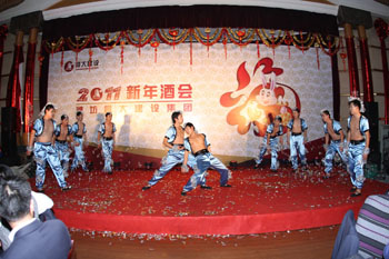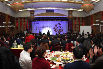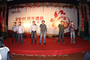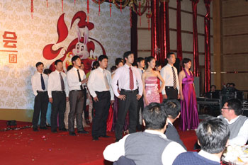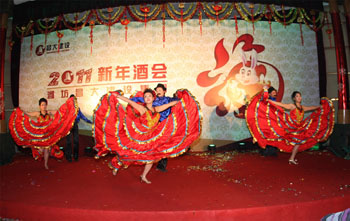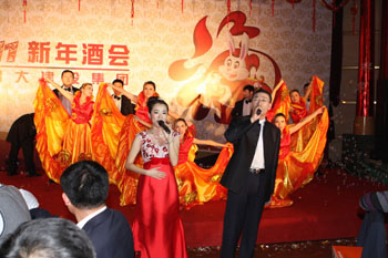 12月30日晚上,集團2011年新年酒會在濰坊大酒店隆重舉行。集團所有中層及以上領導、榮獲集團2009年度的勞動模范、優秀共產黨員、品牌項目經理、十佳技術能手、優秀新員工和參加文藝演出的員工共計260人參加了新年酒會。