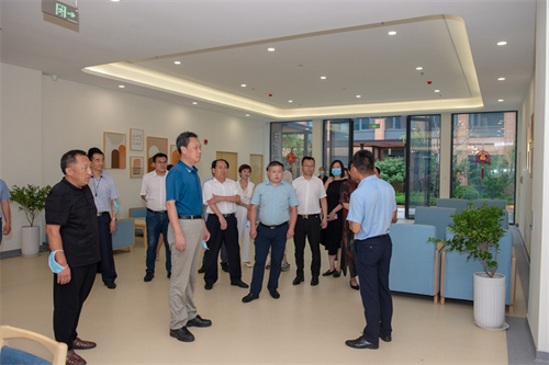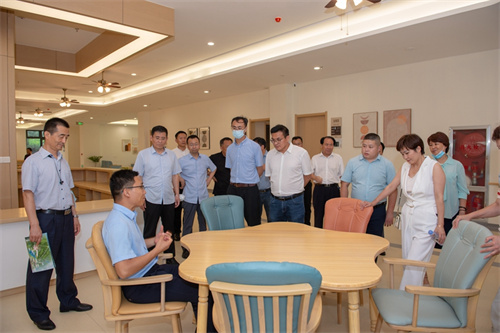 該第16期行業協會、商會諸位會長、秘書長在集團公司期間,先后參觀了集團企業展廳、建筑史館、黨建展廊、中頤龍湖康養小鎮,深入考察了解了集團公司的發展,對集團公司的良性發展給予充分充分肯定和高度評價。在中頤龍湖康養小鎮,生活服務總監孫玉闖陪同參觀了小鎮已交付的頤園組團、青龍湖公園、頤樂康養中心及頤養洋房樣板間并為大家做詳細講解,對康養小鎮規劃、建設、運營、康養服務理念及康養服務內容等方面有了深入的了解。