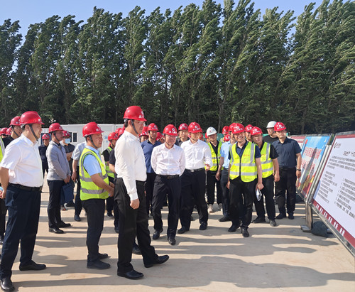 2023年5月16日下午,國務院安委會綜合檢查組對集團七建公司施工的昌樂人民醫院新院區二期項目進行了督導檢查。督導檢查組由應急管理部調查統計司安全監察專員李豪文帶隊,山東省應急廳副廳長彭愛田、昌樂縣縣長桑海強、副縣長張英杰陪同檢查。集團公司安全總監孟憲禮出席活動。