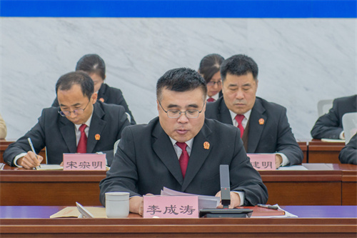 2024年2月29日上午,濰坊市依法護航民營經濟高質量發展座談會在濰坊市中級人民法院會議室召開。市政府副市長、市工商聯主席陳端梅,市委統戰部副部長、市工商聯黨組書記劉興成,市工商聯黨組成員副主席譚述霞出席會議。市委政法委、市工商聯相關工作人員,商會會長代表、企業家代表、民營企業法務中心代表參加會議。集團公司總裁朱九洲出席會議并作交流發言,代表企業家感謝市中院及法院系統在依法護航企業發展過程中給予的支持,同時建議法院系統繼續依法對民營企業提供法律保護等。
