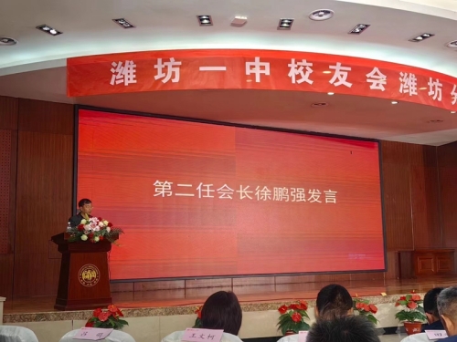 2024年4月6日,濰坊一中在圖書館學術報告廳召開了校友會濰坊分會換屆大會,昌大集團董事長徐鵬強當選濰坊一中濰坊校友分會會長,這也是該組織的第二任會長。