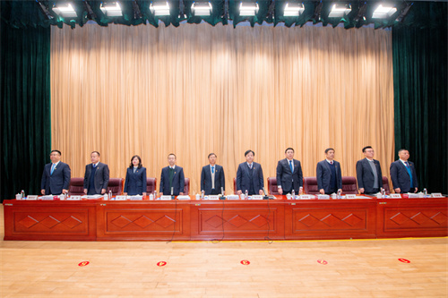 工人文化宮穹頂璀璨、滿天星光,寓義職工大眾之家。“凝聚全員意志,高舉高質(zhì)量發(fā)展旗幟,砥礪前行、實干奮發(fā),以新質(zhì)生產(chǎn)力實現(xiàn)百年昌大目標(biāo)!”的大幅標(biāo)語催人奮發(fā)。上午九時,會議準時開幕。集團董事長徐鵬強、總裁朱九洲以及穆乃杰、姜建魯、吳杰、孟憲禮、房海、劉雁冰、惠守江、王建波等高管出席大會并在主席臺就座。集團公司第九屆職工代表、列席代表,集團公司中層管理人員、2024年度受表彰的先進集體代表和先進個人以及總部全體人員共319人參加大會。