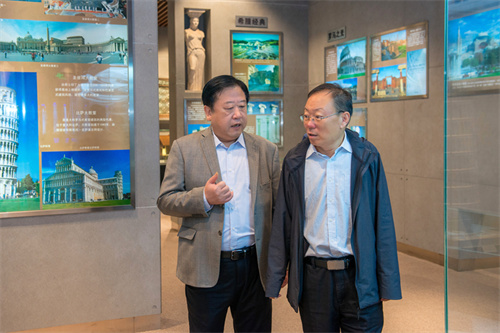 全市座談會后,調研組成員、省住廳二級巡視員李煜,物業管理處處長徐世棟、四級調研員譚子龍在濰坊市建筑業發展服務中心主任翟文成陪同下深入集團公司實地調研。集團總裁朱九洲陪同。調研組參觀了企業展館和建筑史館,詳細了解了集團的發展歷程與企業文化。